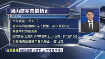 【Now財經台】內地3大中資航空股,中國國航(00753)、東方航空(00670)及南方航空(01055)今日(20日)跑嬴大市,信達證券指,國內航線唔計油費嘅平均票價由跌轉升,中金就指出,內航票價基本上保持按年增長,航空股表現強勢係咪歸功於「反內捲」政策見效?