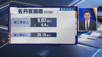 截至9月底止第3季,佐丹奴收入逾9億元,集團表示,東南亞及內地線上業務表現強勁,上季銷售額激增,有助全年收入跌幅收窄。