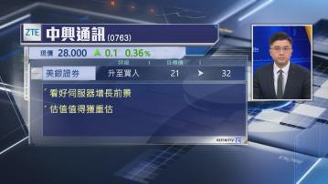 美銀指集團去年伺服器業務增長迅速,銷售近翻倍,並於去年第4季開始交付人工智能(AI)伺服器,預料未來兩年增長持續強勁。加上,中興通訊是內地少有提供內部CPU及系統設計的供應商,雖然短期盈利仍受到電纜業務需求疲弱影響,但認為集團估值值得獲重估,另外,股價自2月高位顯著回套,而且南下資金持有H股比例高,升中興通訊評級至「買入」,目標價由21元升至32元。