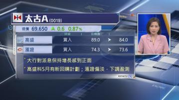 高盛輕微下調太古目標價至84元,維持「買入」評級。