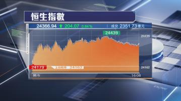 大市今日(11日)輕微高開28點後,升幅急速擴大,午後最多升276點,高見24439點,收市升204點,報24366點。大市全日成交縮減至逾2351億元。