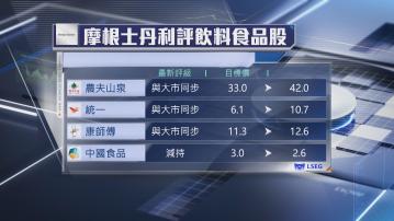 另外,分別降康師傅及中國食品至「與大市同步」及「減持」評級,但升康師傅目標價至12.6元,中國食品目標價就降13%至2.6元。
