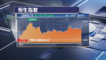 大市今日(28日)高開70點後,最多升279點,高見25667點,其後升勢回順,收市升173點,報25562點。大市全日成交縮減至逾2502億元。