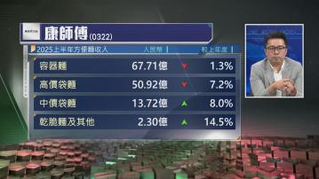 【Now財經台】康師傅(00322)上半年經調整盈利增長12%,毛利率升至34.5%。