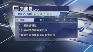 滙證續稱,會留意集團高端住宅項目的銷售反應,其中,九龍塘龍庭里樓盤預期今年下半年落成,一旦開始銷售,預料會有利集團物業業務未來幾個月的表現,雖然調升集團今、明兩年盈利預測,但主要是反映較低的借貸成本,微升九龍倉目標價至23元,維持「持有」評級。