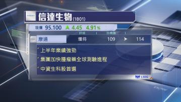 整體而言,摩通看好信達生物是內地最多元化及創新的生科企業,重申集團是行業首選及「增持」評級,並將目標價由109元上調至114元。