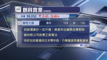 摩通最新將創科從觀察名單中剔出,主要是股價7月中以來累升逾15%,大幅跑贏恒生指數。