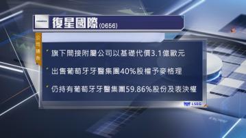 復星旗下間接附屬公司Fidelidade以基礎代價3.1億歐元,出售Luz Saude 40%股權予麥格理,出售後,復星仍持有Luz Saude 59.86%股權及表決權。