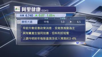 【Now財經台】摩根大通大幅上調阿里健康(00241)目標價,但仍低於現價,最新看6.5元,維持「中性」評級。
