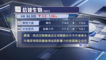 【大行報告】摩通:信達生物跟武田合作有利全球化策略